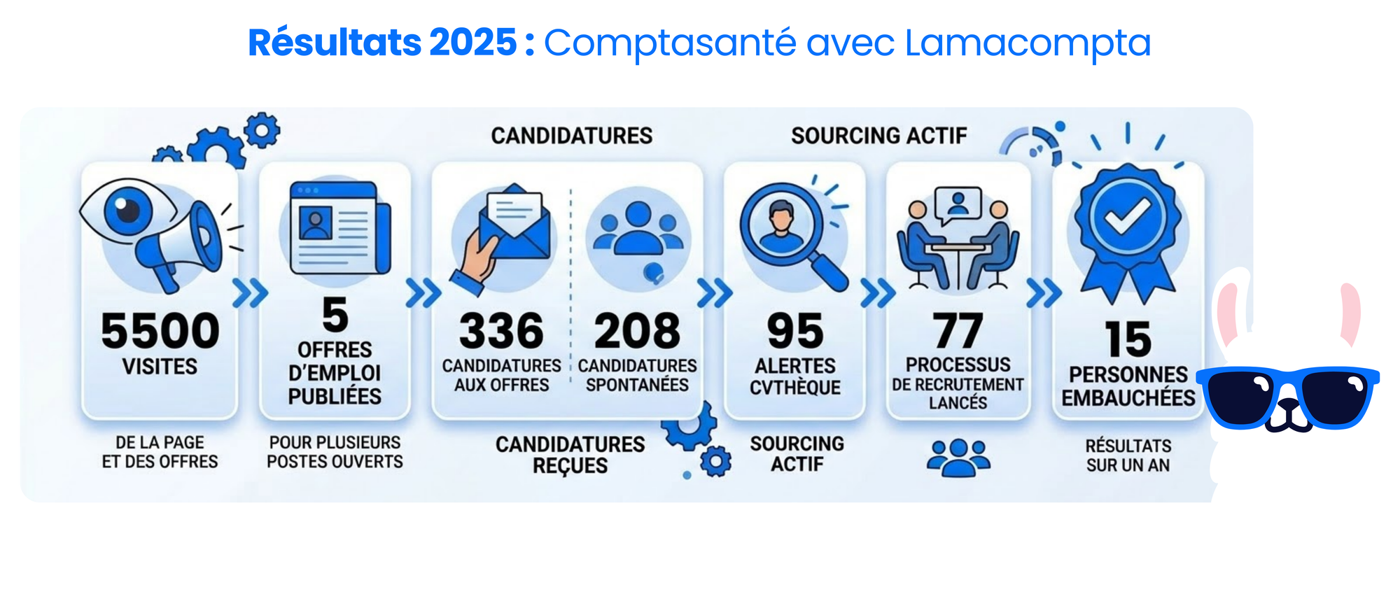 Depuis le début de la collaboration, de 2024 à 2025, Comptasanté a réalisé +20 recrutements avec Lamacompta.
