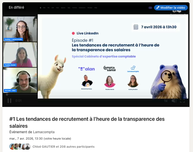 Cet article est issu du live LinkedIn "Tendances Recrutement, épisode 1 : La transparence des salaires", organisé le 7 avril 2026 par Lamacompta (Audrey Brullon), avec Pauline Séché (Comptasanté) et Mickael Eymauzy (Alan).