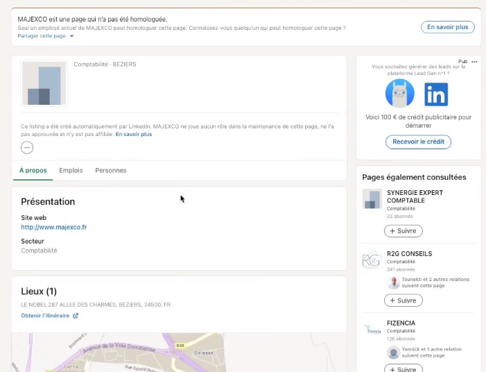 Vous avez une page sur LinkedIn mais ce n'est pas vous qui l'avez créée ? Lorsque vous ou l'un de vos collaborateurs indiquez à LinkedIn le nom de l'entreprise dans laquelle vous travaillez, Linkedin crée automatiquement une page à votre nom et récupère les informations qu'il trouve sur le web, comme votre site web par exemple. La présence d'une page LinkedIn non homologuée peut représenter un risque de communication pour votre cabinet. Pour éviter toute confusion ou usurpation d'identité, voici un guide étape par étape pour homologuer une page LinkedIn en nous appuyant sur l'exemple du cabinet Majexco. C'est parti !